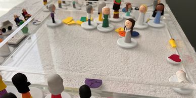 Essas dinâmicas de dor dos nossos ancestrais se apresentam no campo durante a constelação. As memórias e emoções se manifestam através dos bonecos representantes dos elementos do sistema familiar.