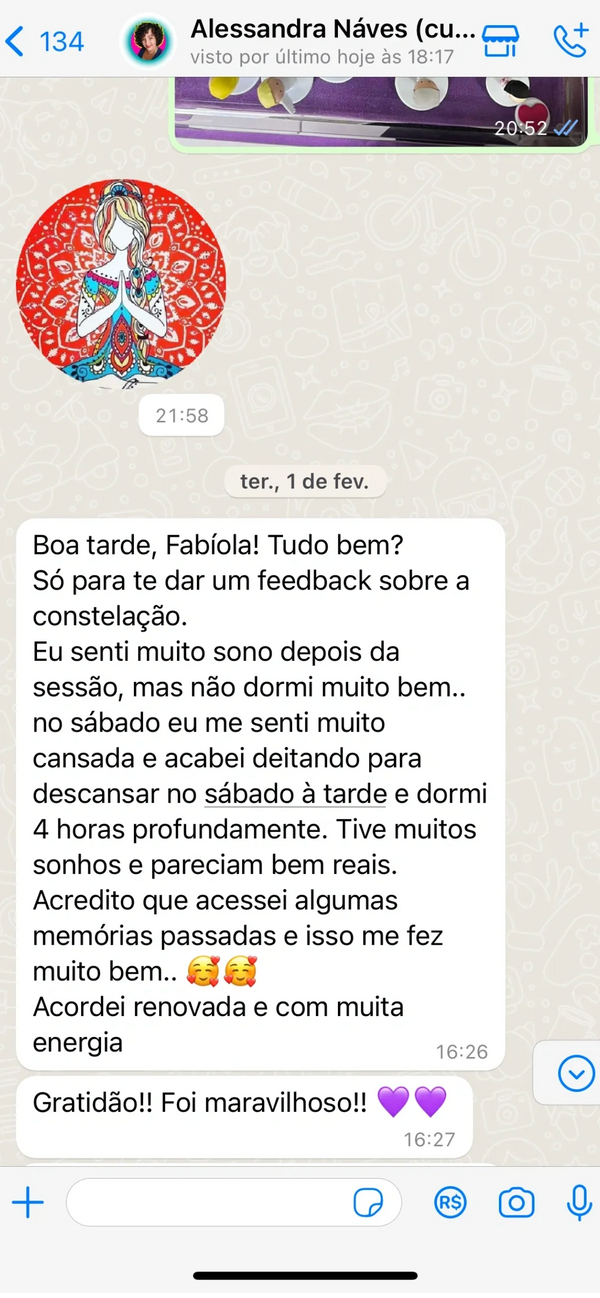 Quem escolhe vivenciar a constelação em busca de autocura, promove um bem e expansão para todo o sistema... é uma liberação para a ancestralidade e também para os descendentes.